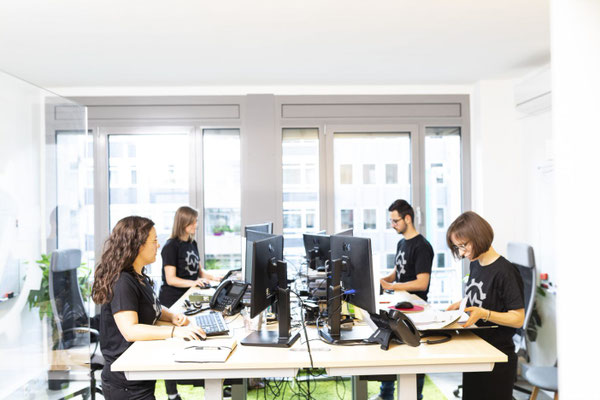 Wir setzen konsequent auf Working from Office. Mehr Innovationen („Gespräche an der Kaffeemaschine“), bessere Arbeitsbedingungen (Breitband, Klimaanlage, 3 Bildschirme, große